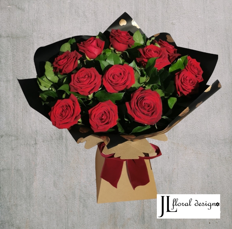 Timeless by name, Timeless by nature. The definition of love, a dozen roses. This stunning design is tied together and in water.